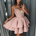 Hot Sale New Listing Pink Homecoming Dresses 2020 Satin A-Line Spaghetti Strap Lace Homecoming Dresses Vestidos Party Gowns